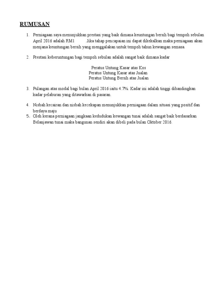 Shaheed azhar · nota tingkatan 4 prinsip akaun. Rumusan perniagaan saya telah mengamalkan konsep, prinsip dan andaian perakaunan berikut. Contoh rumusan akaun folio 134w0823wzn7. Contoh rumusan kerja kursus sej 2013. Exercise rumusan saya telah menyempurnakan kerja kursus prinsip perakaunan dalam tempoh masa tiga bulan yang telah ditetapkan iaitu bulan mac hingga bulan .